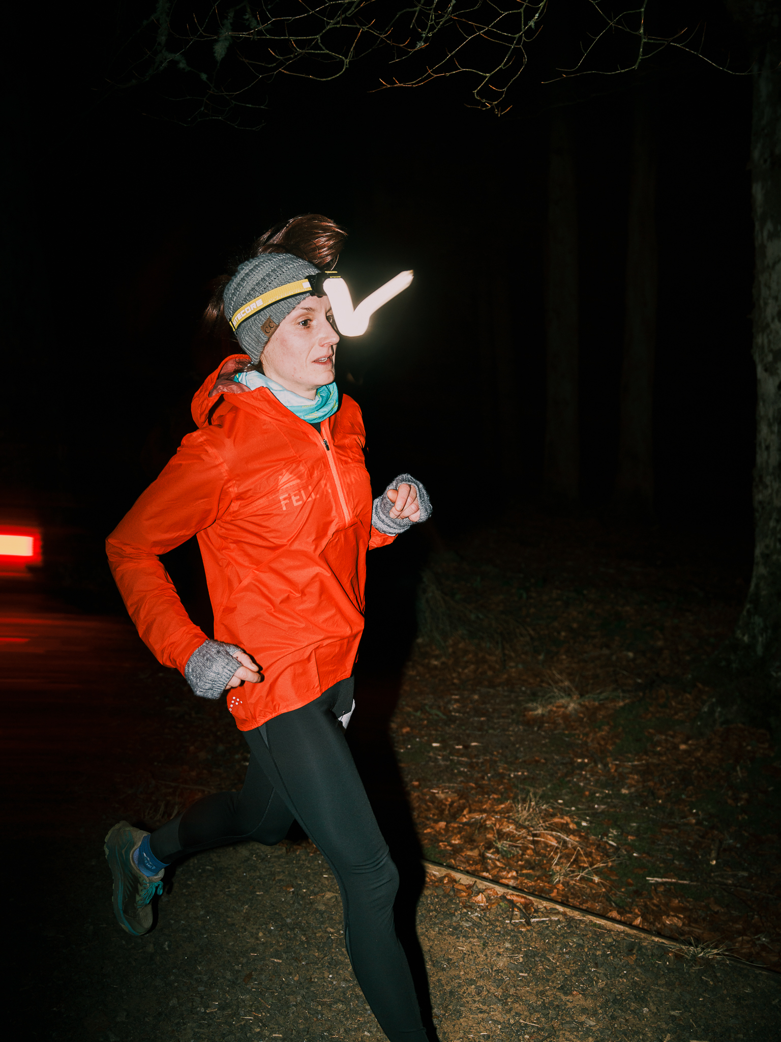 Adrian revelled in his role of pre race speech as he morphs into a coffee pulling version of Lazarus Lake. He already has the beard. At 6pm the runners were unleashed, slipped out of the walking track and onto the Forest Drive and within 200m were into their first bit of mountain bike trail known as Spooky Well. This gave maximum twisting and turning without much elevation so by now runners will know what to expect and whether both their bodies and equipment are up to the task. I feel like this is an appropriate time to mention Andrew Dancer who rocked up without a head torch to a night run – just saying.