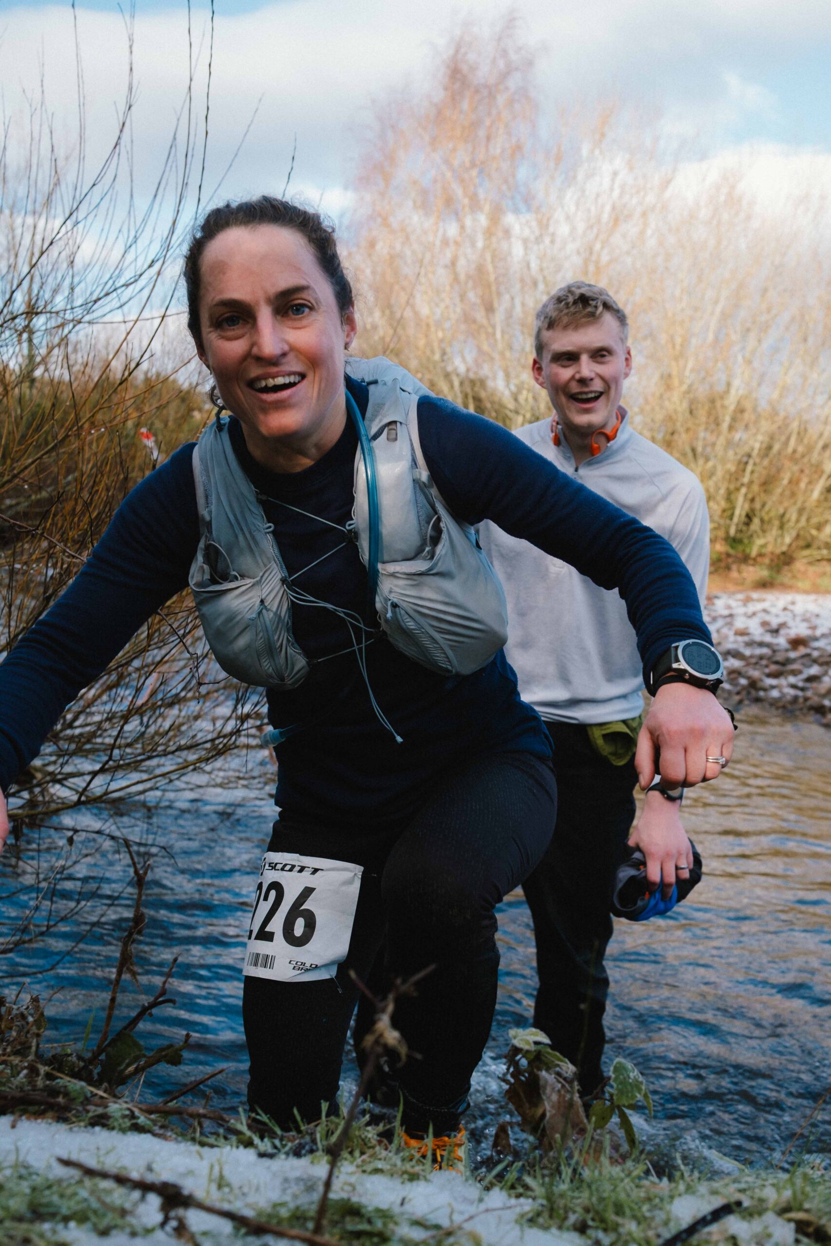 All that lay ahead now as a little jog back through the tiny hamlet before sampling the delights of Andy’s special water crossing finish.  Over the bridge people were sent before turning right and dipping into the icy cold waters of the Breamish.  Toes were treated to some free cold water therapy whilst early runners benefited from a bit of ice breaking to clear the way.  Spectators waited on the far shore and with clean trainers the runners popped out and ticked off the finish by being scanned and filled with the pride of a job well done.  The hazards of a soaking wet floor in the cafe were nothing compared to the perils faced out on the hill and a mug of hot soup went down a treat to replace some of the calories lost and put some fuel back in the tank.