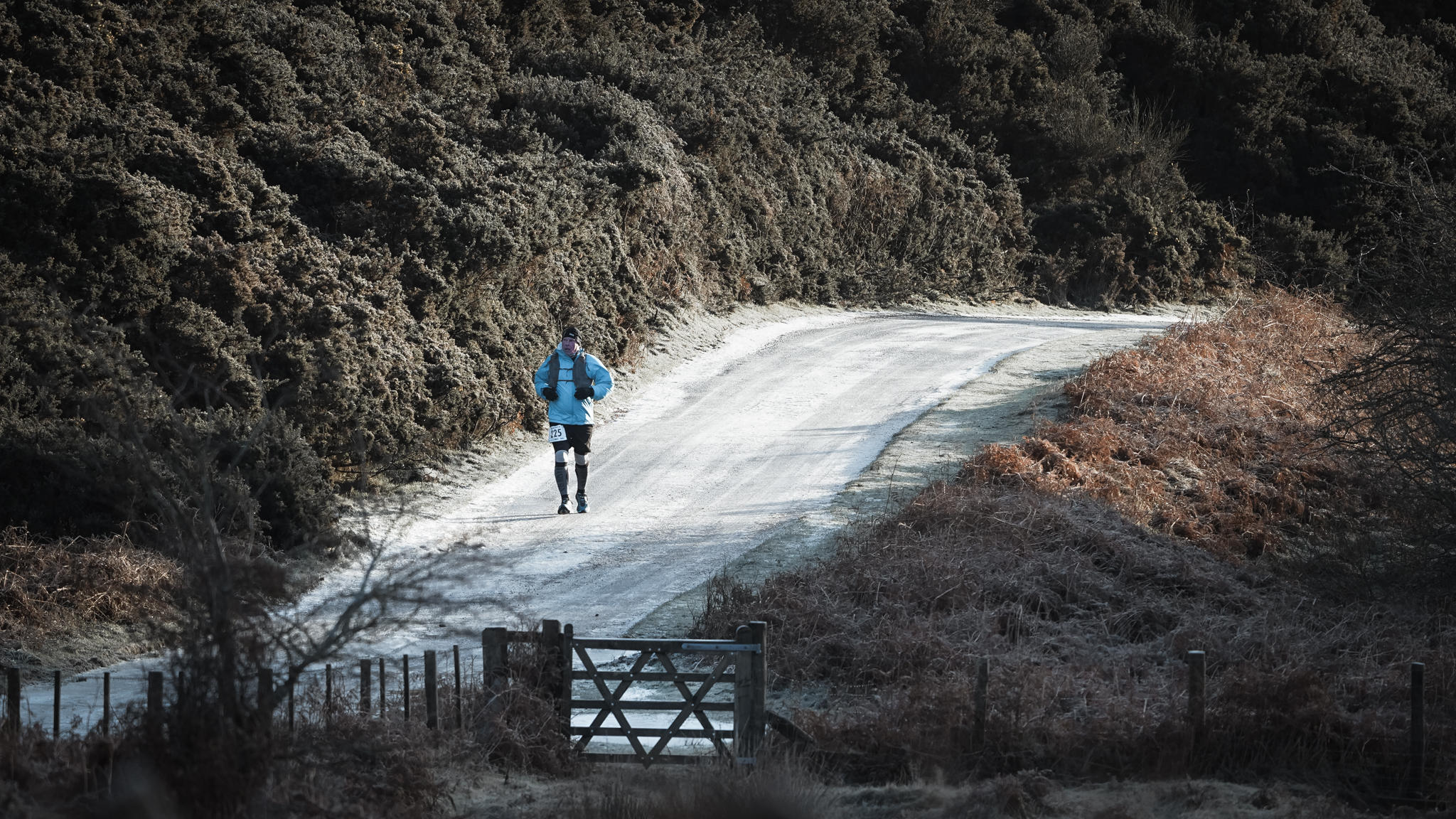 On the descent back down the snow had been compressed or pushed aside so now the frozen ground underneath could bare its teeth.  Several runners put the “wipeout” name into effect but all of them got back on their feet and soldiered on.  The way back down is a fine reward for all that effort to get up there and people were off the hills in half the time it took to get up there with only the slight rise to Dunmoor in the middle to check the speed.  As runners came cross country from Cunyan Crags they once again hit the road and it was plain sailing back to Blighty.